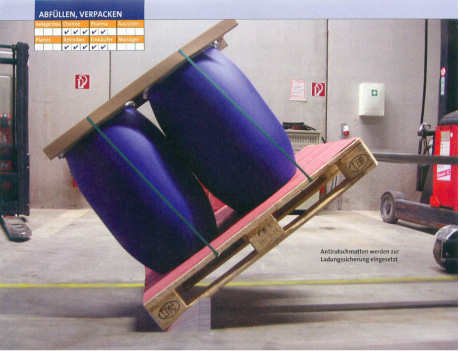 The consequence: Damage to the product and – what might be even worse – danger to road traffic and users. The responsibility lies by no means solely with the driver. Above all, the onus is on the logistics specialists in charge of the loading process, who (for example in a chemical company) are responsible for securing the loads on a lorry properly.