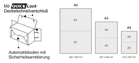 Innerhalb der MULTi-Cargo Systemverpackungen wurde aufgrund starker Nachfrage aus den Industrien Druck und Werbung sowie aus dem Fullfilment Dienstleistungssektor die Produktreihe DIN-Formate eingeführt.Diese Automatikkartons sorgen dafür, dass das Verpacken von Drucksachen heute schneller, sicherer und viel effektiver erledigt werden kann als es in der Vergangenheit mit z.B. Aufrichteschachteln der Fall war.